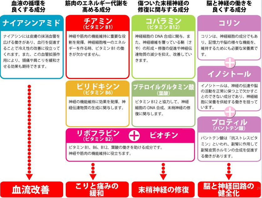 ビタミンBの各成分にはそれぞれ特性がありますが、ビタミンB複合体として併せて摂ることで相乗作用を発揮します。