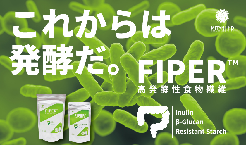 FIPER™はミタニホールディングス社独自の製法で「イヌリン・βグルカン・レジスタントスターチ」の3種類の【高発酵性食物繊維】を配合。