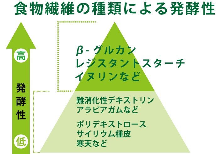 今まで食物繊維は水溶性と不溶性の2種類で分けることが多かったのですが近年医療従事者の間で食物繊維の発酵しやすさ、【発酵性】が注目されています。